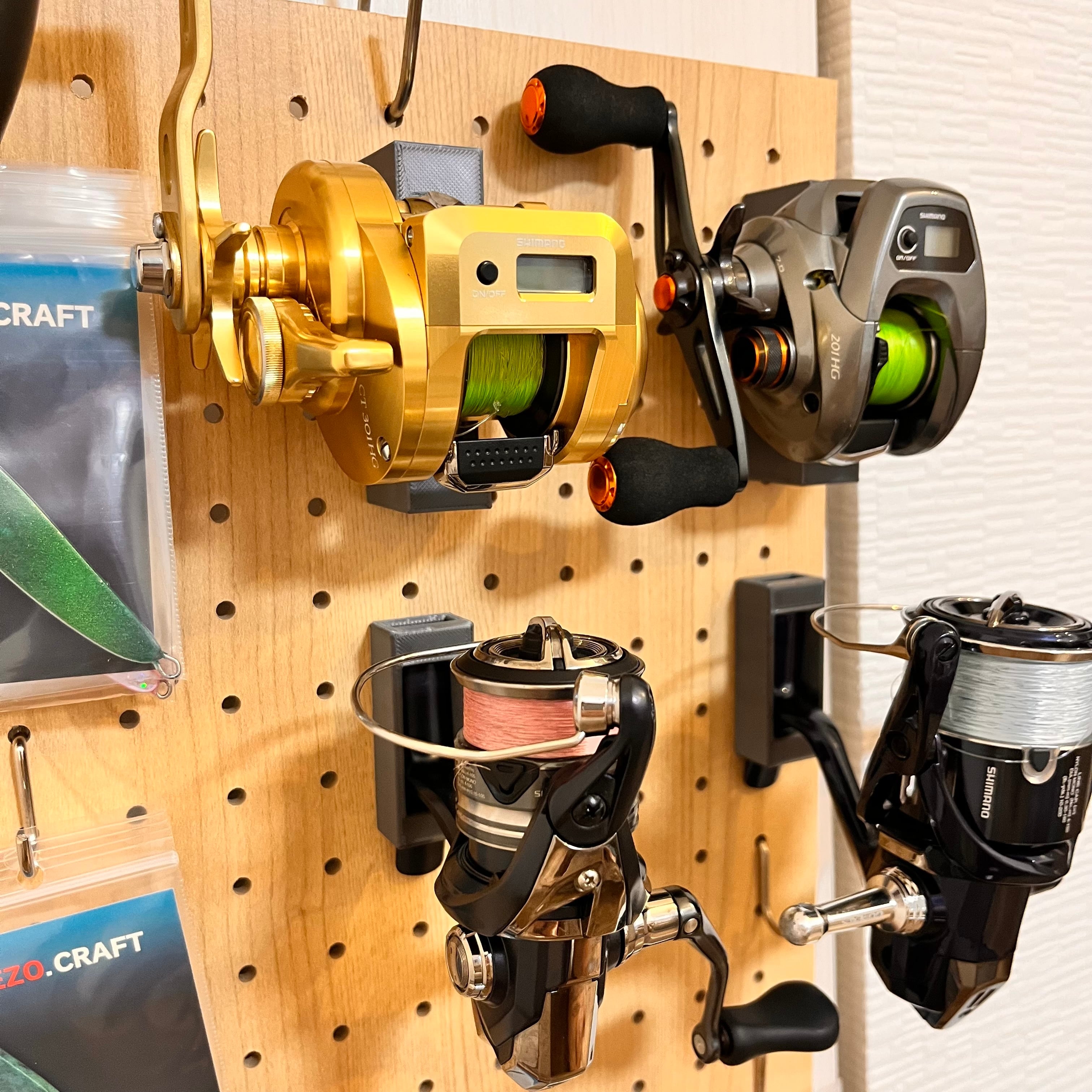 有孔ボード取り付け用 スピニングリール、ベイトリールホルダーセット